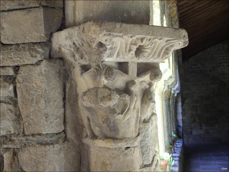bien trabajada. Las columnas tienen el fuste liso y de ellos destacan sus capiteles labrados con temática historiada, y que guarda