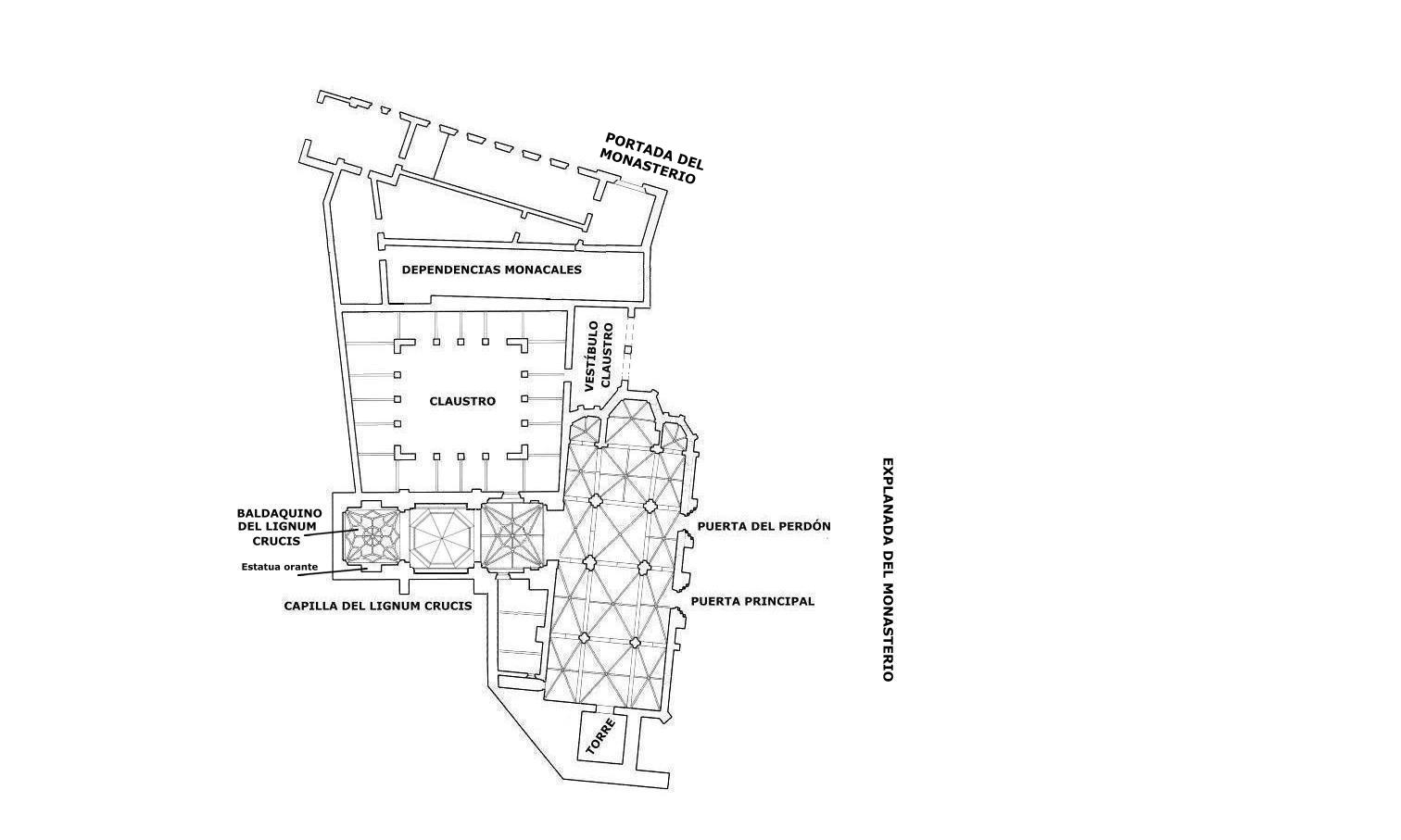 de los monjes, la hospedería, cocina, refectorio, capilla y biblioteca. Lo más notable de