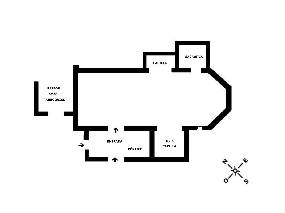 Dispone en su fachada norte de dos estancias, una de ellas adosada a la cabecera cumple funciones de sacristía, su entrada se realiza desde el presbiterio