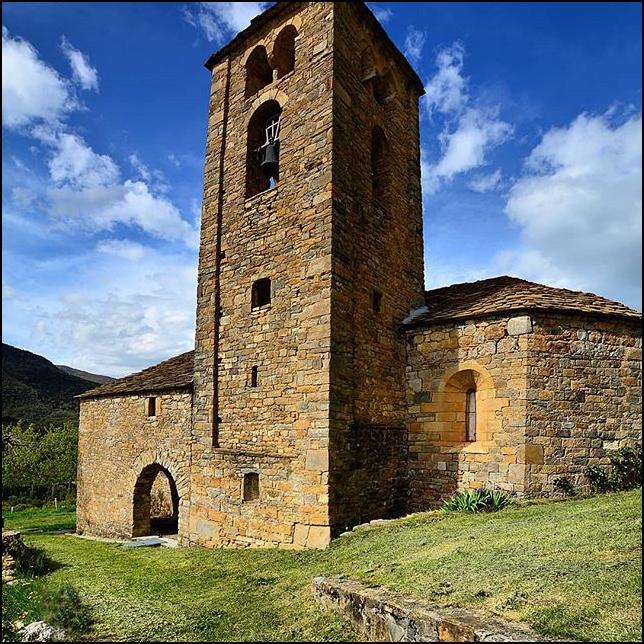 La torre campanario es de estilo románico con influencias lombardas, se considera de finales del siglo XI, se encuentra adosada a la fachada Sur junto a la